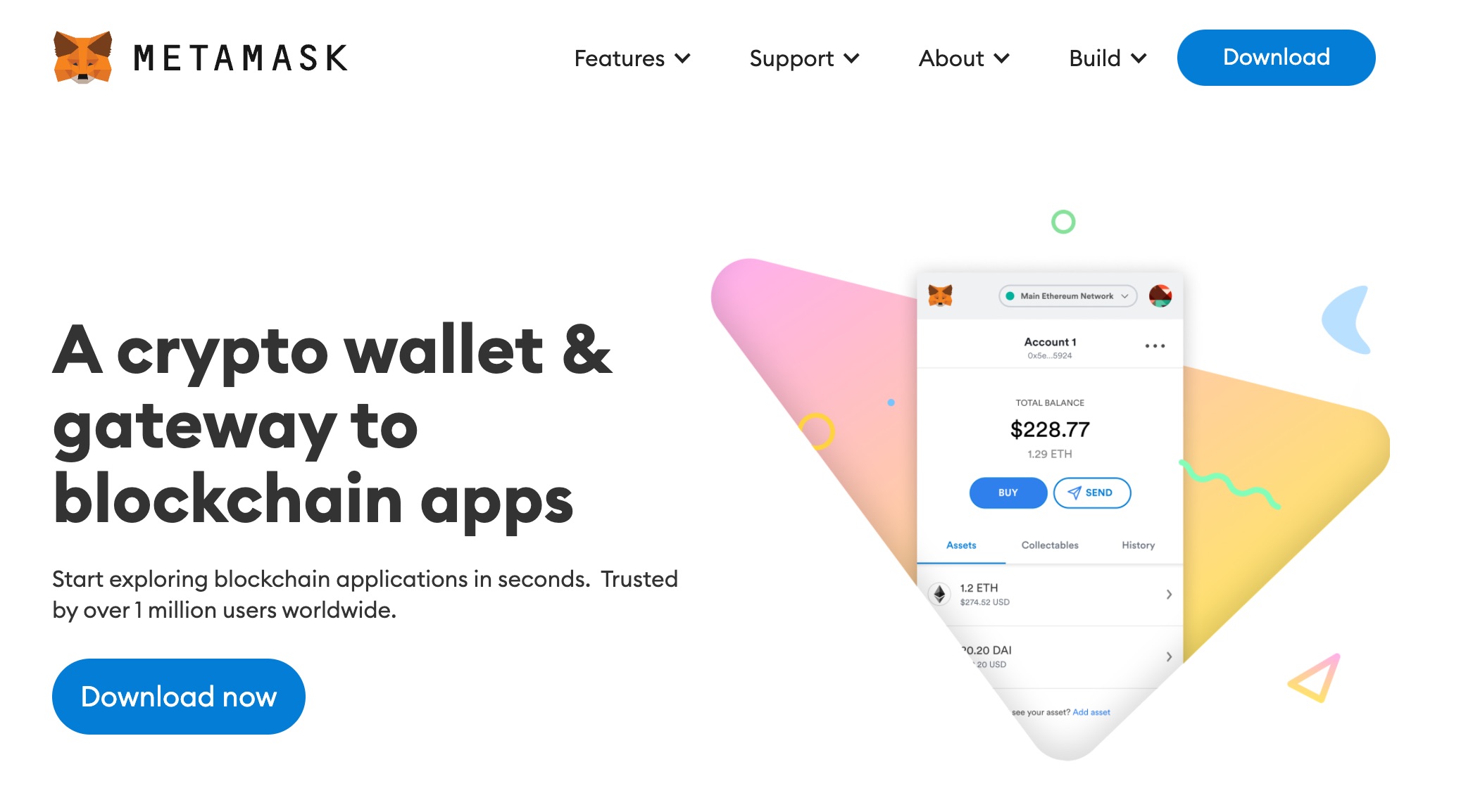 Als Erstes besuchen Sie https://metamask.io/ und klicken auf „Download“.