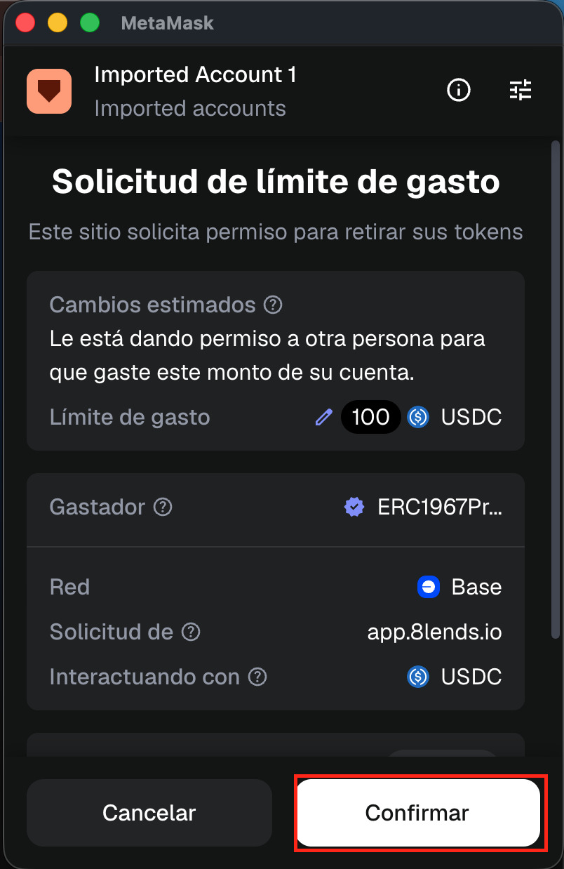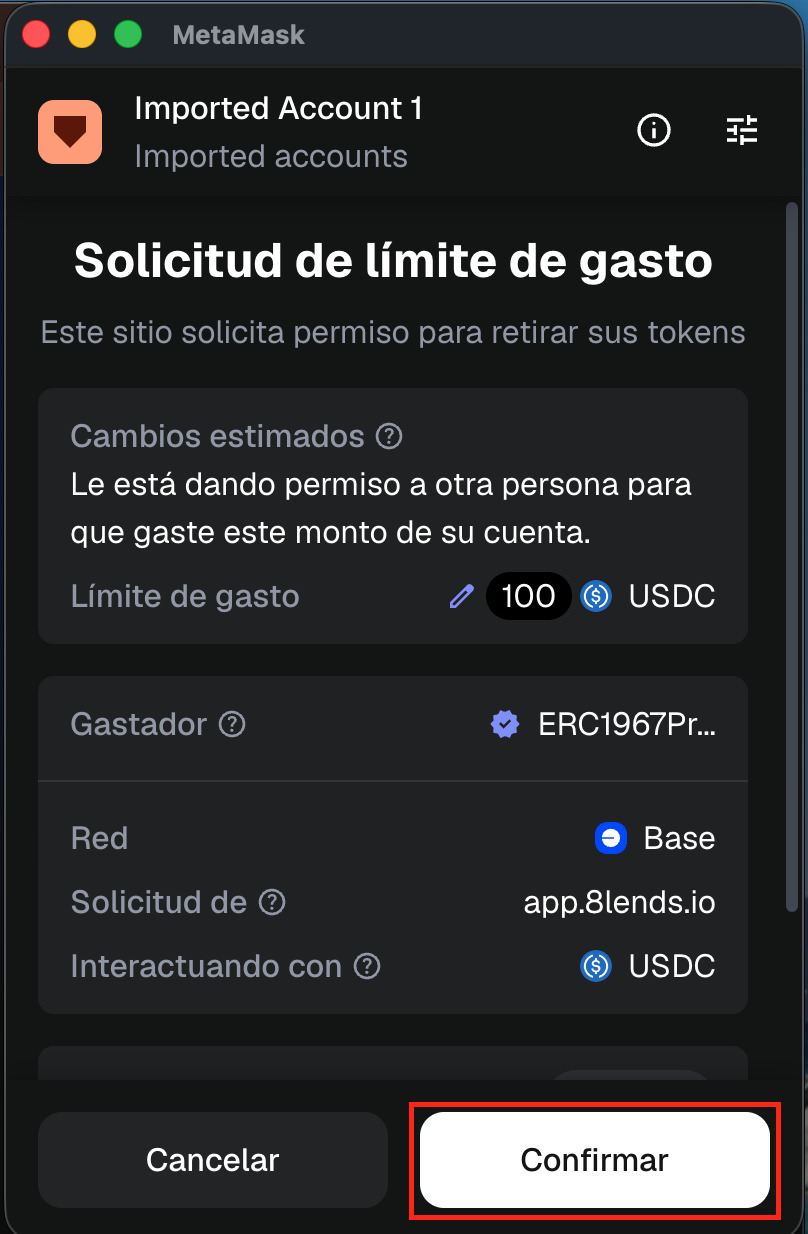 En la ventana de la billetera que aparece, comprueba que la cantidad sea correcta y pulsa "Confirmar".