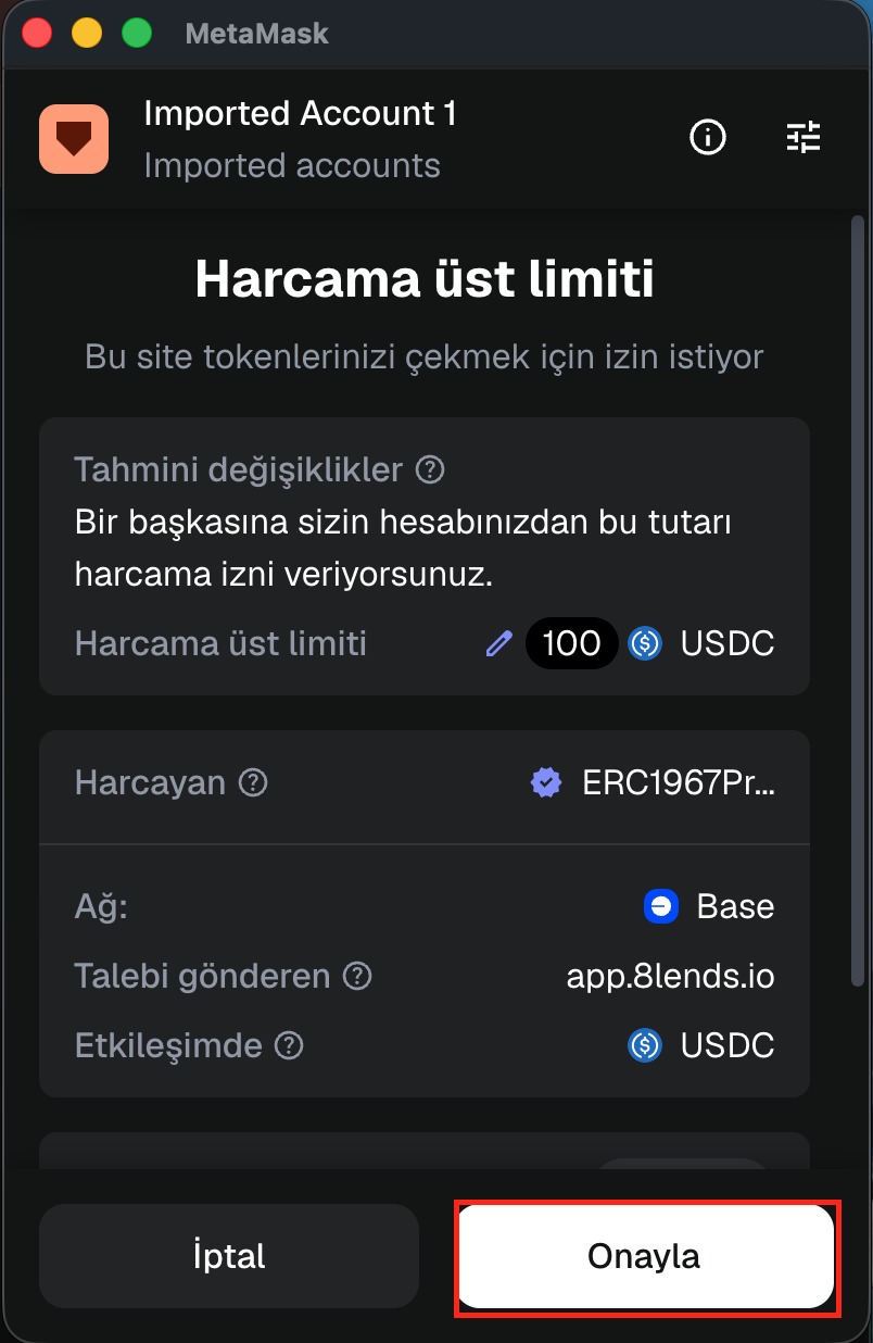Açılan cüzdan penceresinde tutarın doğruluğunu kontrol edin ve "Onayla"ya basın.